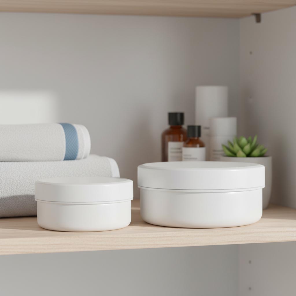 Serija proizvoda "White Line" iz Flaschenlanda obuhvata visokokvalitetne plastične kutijice od 12 ml, izrađene od robusnog polipropilena (PP) u elegantnoj bijeloj boji, opremljene praktičnim zatvaračem na navoj. Ovi spremnici su posebno dizajnirani za sigurnu i higijensku pohranu krema i kozmetičkih proizvoda. Plastične kutijice iz serije "White Line" odlikuju se otpornosti na hladnoću, UV-zračenje i pogodnosti za pranje u mašini za suđe, što omogućava svestranu i dugotrajnu upotrebu. Materijal polipropilen pruža stabilnost i zaštitu od utjecaja okoline, dok kompaktna veličina od 12 ml idealno odgovara za male količine ili uzorke. Okrugli oblik i bijela boja daju kutijicama profesionalan i privlačan izgled.