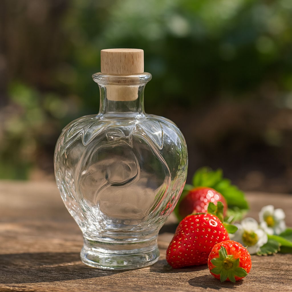 Boca s motivom „Jagoda“ oduševljava svojim šarmantnim, detaljno preciznim dizajnom i donosi slatkoću i svježinu omiljenog ljetnog voća u elegantan stakleni oblik. Izrađena od visokokvalitetnog prozirnog stakla, savršena je za fine žestoke piće, voćne rakije ili izvrsne likere. Harmonično strukturirana površina podsjeća na prirodnu teksturu jagode i čini bocu pravim ukrasom. Zahvaljujući plutenom čepu, sadržaj se može sigurno i elegantno zatvoriti.