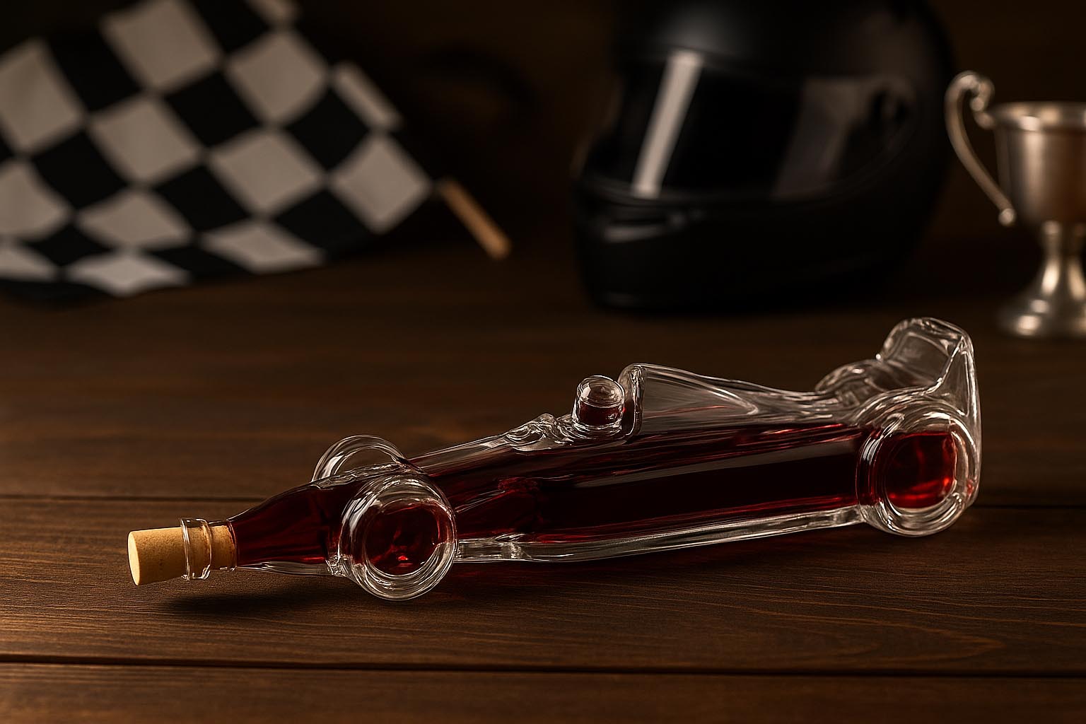 Boca s motivom „Trkaći automobil“ je izuzetan hit za ljubitelje motosporta i one koji cijene elegantna pakovanja. Njen detaljno oblikovan dizajn savršeno hvata dinamiku i eleganciju klasičnog trkaćeg automobila, čineći je idealnim izborom za posebne žestoke napitke, rakije ili likere. Izrađena od visokokvalitetnog prozirnog stakla, kombinuje upečatljiv dizajn s vrhunskom izradom. Čep od plute osigurava elegantno zatvaranje i daje boci profinjen izgled. Bilo kao poklon za entuzijaste motosporta ili kao ekskluzivna boca za kolekcionare – boca „Trkaći automobil“ ističe svaki napitak sa brzinom i stilom.