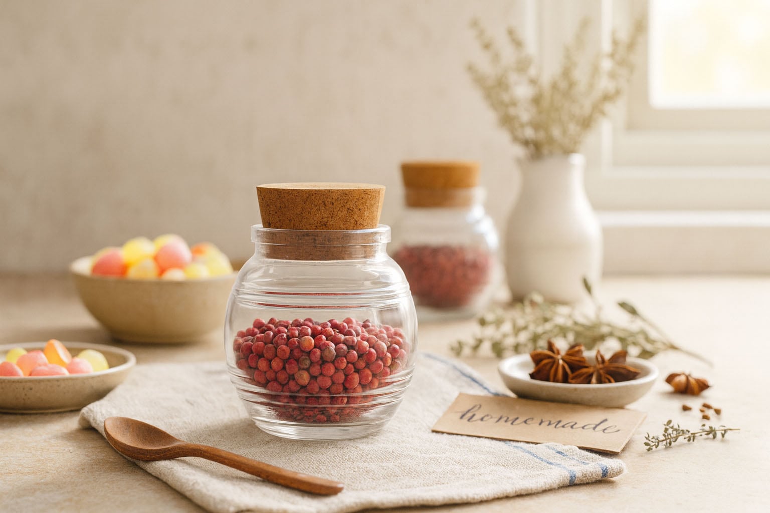 Serija "Jule" spaja estetsku eleganciju s praktičnom funkcionalnošću i nudi stilizirano rješenje za čuvanje začina, bombona i drugih finih delicija. Kuglasti stakleni spremnik s plutenim čepom ističe se svojim nježno zaobljenim oblikom i karakterističnim prugastim reljefom, koji mu daje posebnu teksturu i nostalgični šarm. Okrugla baza osigurava harmoničan izgled, dok plutena grla omogućava sigurno i prirodno zatvaranje. Jule nije samo praktičan spremnik za pohranu, već i dekorativni detalj koji daje poseban štih svakoj kuhinji ili trpezi.