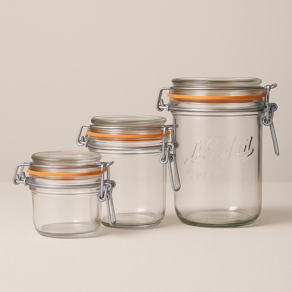 Serija "Super Terrine" od Le Parfait predstavlja autentičnu francusku zanatsku izradu i nudi visokokvalitetno rješenje za očuvanje i prezentaciju hrane. Ovaj klasični stakleni teg s metalnim zatvaračem i reljefom "Le Parfait Super" posebno je dizajniran kao teg za okretanje, što omogućava jednostavno vađenje kolača, tortica i drugih deserata. Također je idealan za džemove, mesne i kobasice konzerve, kao i razne fine namaze. Sa zapreminom od 125 do 1000 ml, "Super Terrine" nudi širok spektar upotrebe. Priloženi stakleni poklopac i karakteristični narančasti gumeni prsten osiguravaju sigurno, hermetičko zatvaranje.