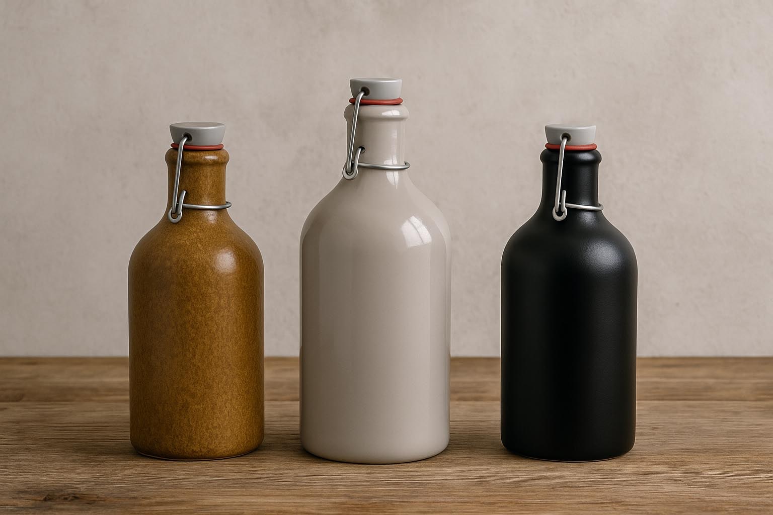 Posebno dostupna kopča i gumena brtva osiguravaju hermetičko zatvaranje glinenog vrča. Idealno za pića, sirćeta i ulja, čuva svježinu i daje bocama nostalgičan šarm. Jednostavna za otvaranje i zatvaranje, kopča pruža pouzdano i dugotrajno rješenje.