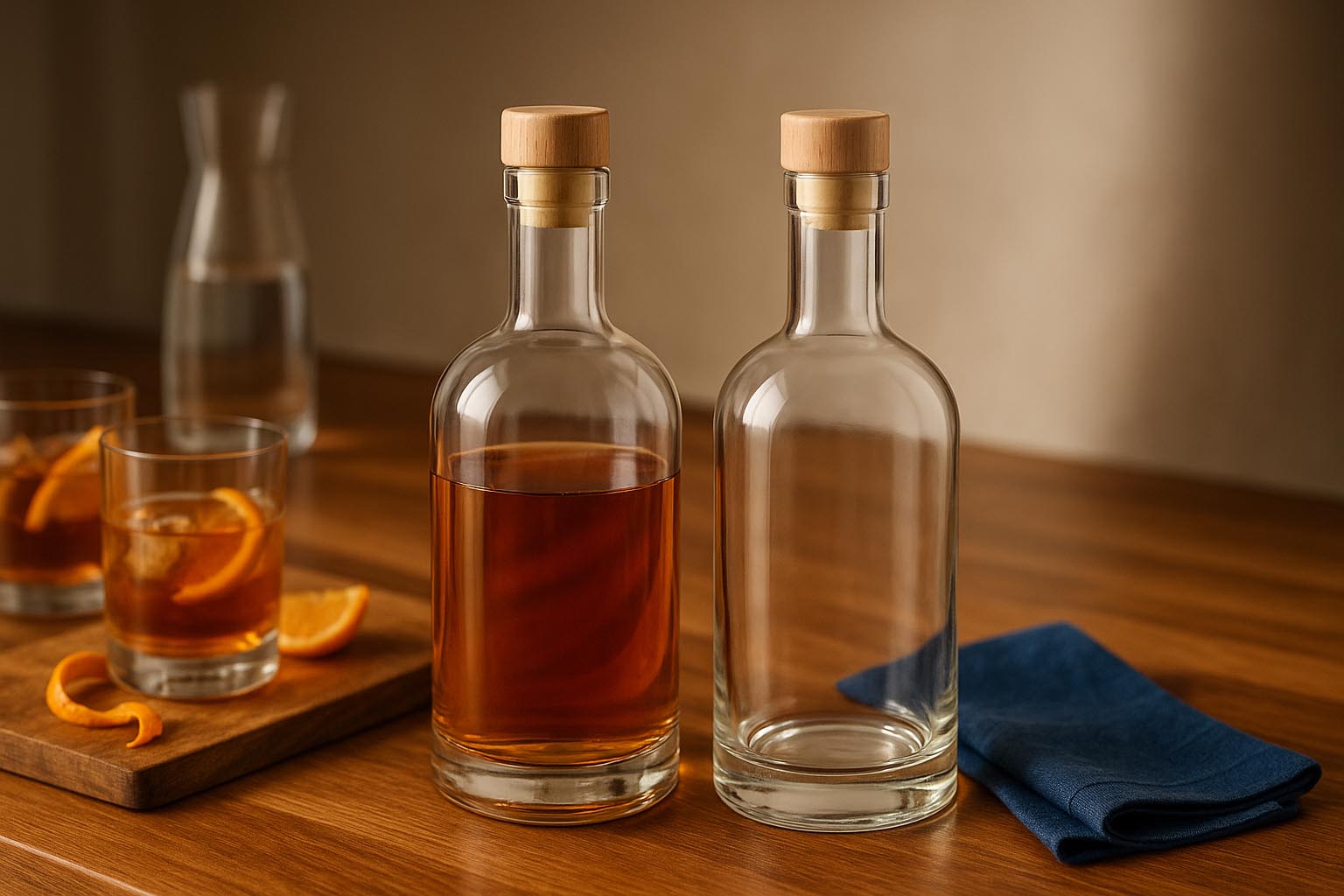 Bočica za dizajn Franco spaja talijansku izradu s bezvremenom elegancijom i nudi stilsko rješenje za visokokvalitetne žestoke napitke, likere, sirupe i druge vrhunske proizvode. Dostupna u veličinama od 500 i 700 ml, oduševljava čistim linijama i skladnim oblikom koji savršeno ističe svako punjenje. Klasični čep omogućava sigurno i elegantno zatvaranje – odgovarajući zatvarači dostupni su u našem asortimanu. Sa svojom vrhunskom izradom i minimalističkim dizajnom, Franco je idealan izbor za brendove koji žele spojiti ekskluzivnost i eleganciju u jednoj bočici.