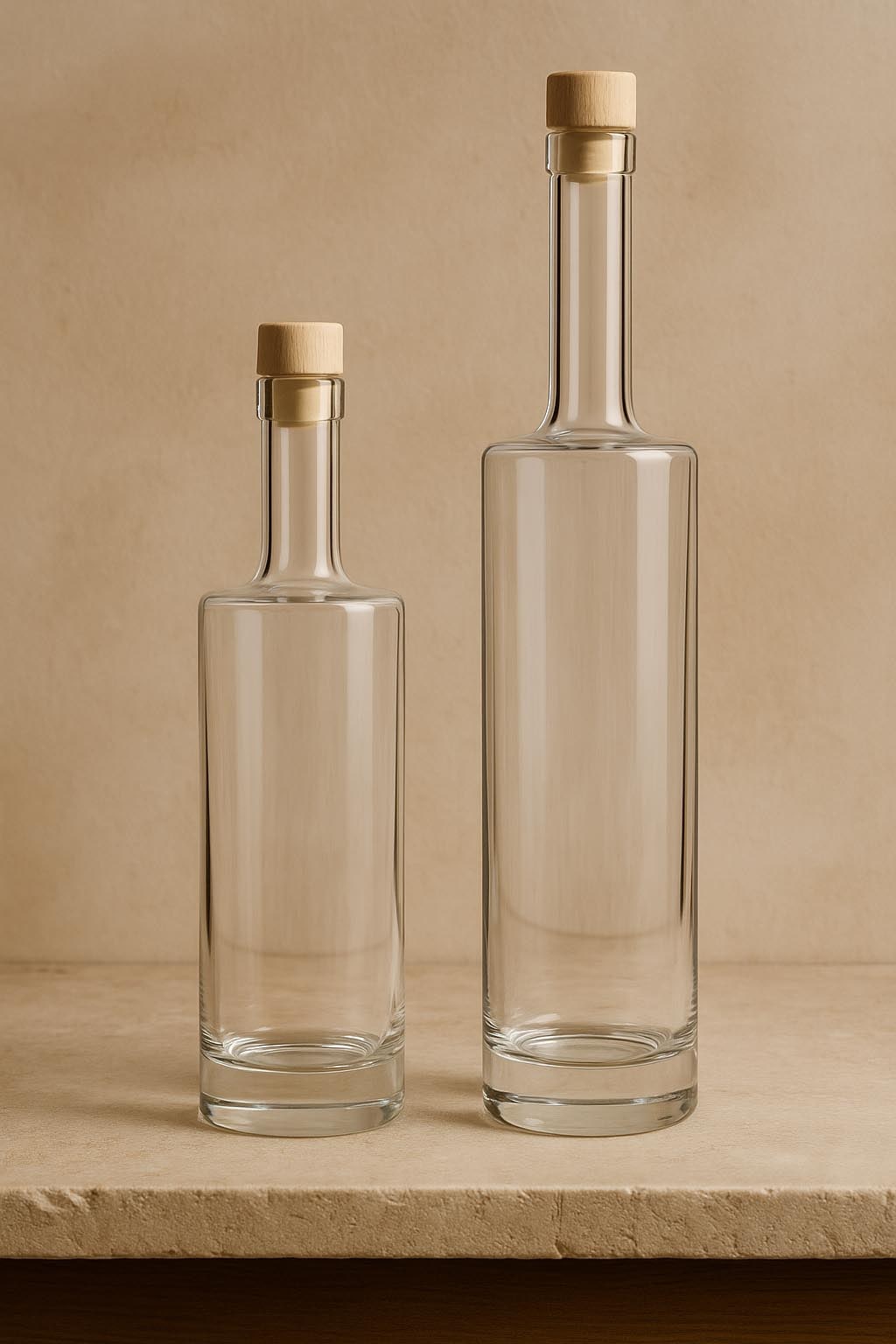 Serija "Titano" spaja snažnu prisutnost s profinjenom jednostavnošću i postavlja nove standarde u svijetu visokokvalitetnih staklenih ambalaža. Ova elegantna cilindrična boca od prozirnog stakla impresionira masivnim staklenim dnom koje ne samo da pruža stabilnost, već i vizualnu dubinu i ekskluzivnost. Dostupna u veličinama od 500 i 700 ml, "Titano" je savršen izbor za vrhunske žestoke piće, plemenite likere i karakteristične destilate. Čep od plute osigurava klasično i sigurno zatvaranje – odgovarajući zatvarači dostupni su u našem asortimanu. Sa svojom robusnom elegancijom i bezvremenom estetikom, "Titano" je idealan izbor za zahtjevne brendove koji cijene kvalitet i izražajnost.